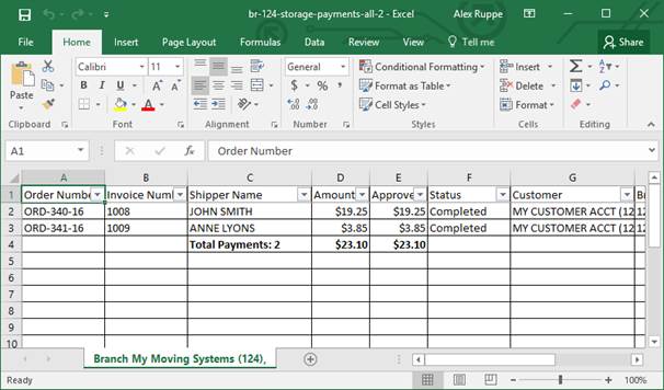 Figure 60: Sample of data exported from Recurring Payment Processing