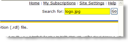 Use the Report Manager search utility to locate existing files by their Name, including report and image files. The search utility is located in the upper right-hand corner of the Report Manager window.