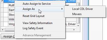 Described in the table below are the right-click options available from the crew and equipment assignment grids in Dispatch Center.