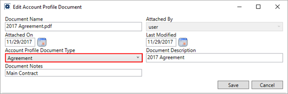 Assign document types to files added to the profile through the Documents tab within Account Profile Setup.