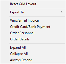 Order Details This option opens the Order Details screen allowing a user to view key data of the order.