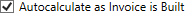 Autocalculate as Invoice is Built Check this option to instruct the application to automatically compute the Sales Tax amount within New Complete Invoice. If this option is unchecked, users will need to compute the tax manually through the Calculate button, which appears next to the Sales Tax field. |