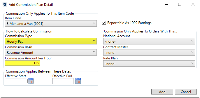 7. Set Hourly Pay or % of Hourly Rate type commissions for commissioning of employees on hourly basis (Add Commission Plan Detail)