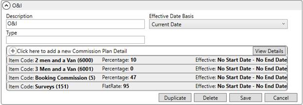 You can also utilize the right-click options to duplicate or remove Commission Plan Detail items.