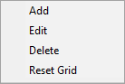 Reset Grid You can modify the order in which the columns display in the Locations grid along with adding column sorting and filtering. Selecting this option resets the grid back to the application defaults. Refer to the Data Grids topic for more information.