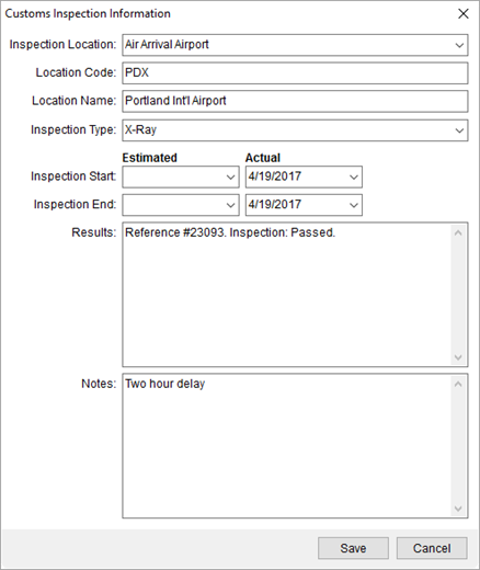Figure 18: Customs Inspection Information screen