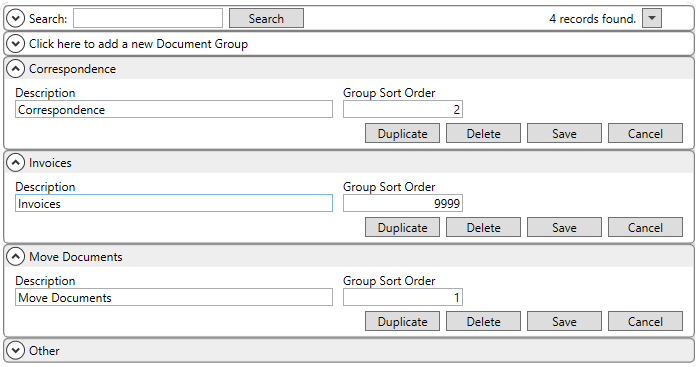 Define general categories assignable to Document Type records.  These groups categorize the documents within the Document Management Viewer.