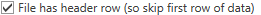 File has header row Check this box if the import file contains a header row and you wish the application to skip processing the first row. |
