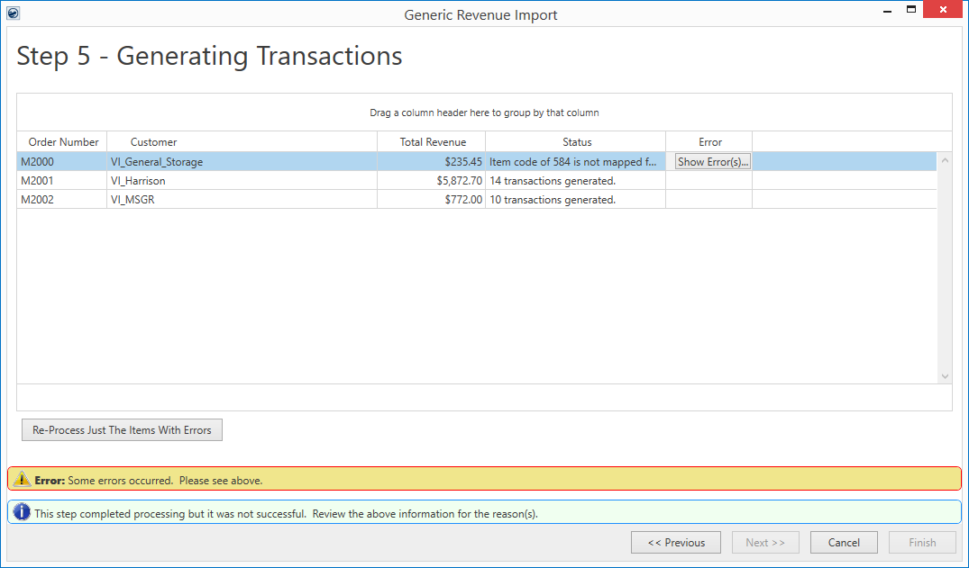 Figure 9: Generic Revenue Import - Step 5 (with errors)