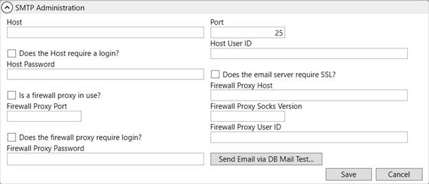 Establish the settings needed for MoversSuite to reference the mail service on your application server (or elsewhere) through the SMTP Setup. The settings referenced when establishing Database Mail must also be set within SMTP Setup.