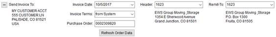NOTE: You can only change the customer set for the Send Invoice To field if the Remit-To links to a van line or if the Allow users to manually update billing on invoices flag is set within the System Wide Options.