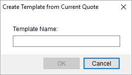 Template from Current (Alt+C+T) Choose this option to create a template based on the quote you have open. You are prompted to enter a name for the template (up to 64 characters) through the Create Template from Current Quote dialog.