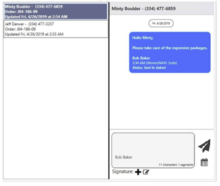 Remember that the Signature window is a blocking dialog, so while it is open, it will prevent access to any other part of the Text Messaging feature, and MoversSuite.