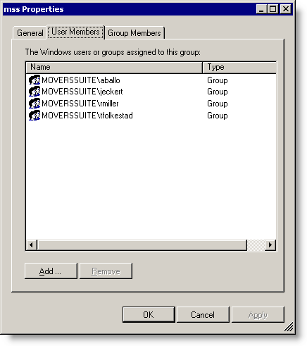Update members listing of Windows users belonging to the group through the use of the Add and Remove functions