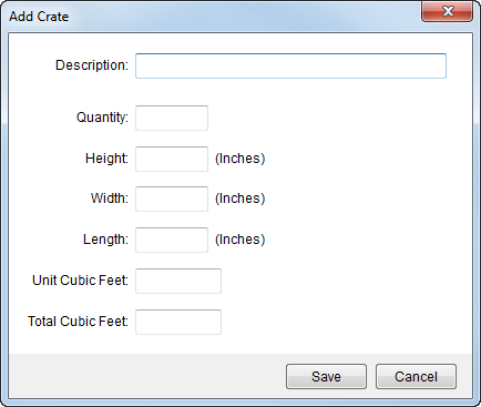 The application will compute the cubic feet of all items by multiplying the Quantity value by the Unit Cubic Feet and display the results in this field.