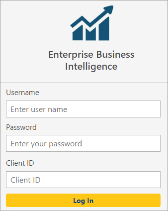 When the BI Tool icon is clicked, the log in screen has the name Enterprise Business Intelligence shown. The expanded name of Enterprise BI is Enterprise Business Intelligence. We refer to this product is referred to as “the BI Tool.