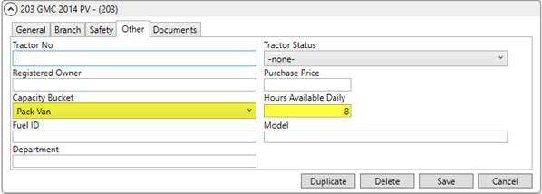 To be included in Capacity Planning, the resource must have a Status of Active, be Available for Local Moves, and link to a supported Equipment Type records within the General tab of Equipment Setup.