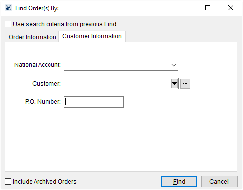 The following table describes the data fields referenced within Customer Information tab of a Find. Refer to Find the topic for information on the functions available through this dialog.