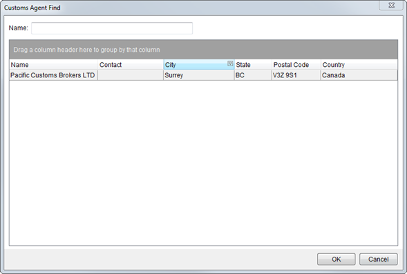 The Customs Agent Find allows a user to quickly locate