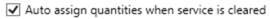 When checked, the Quantity field is available within Reserve Equipment screen. The Quantity field defaults to what is set for the item within Equipment Request; the amount set as the default is also applied when a resource is auto assigned. Additionally, if checked the Auto assign quantities when service is cleared option becomes available.