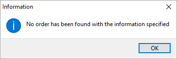 When no records match the search criteria, the Find will return a message of “No order has been found with the information specified.”