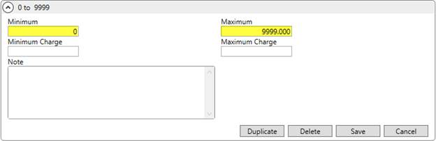 Set other values as needed. For example, the Minimum Charge and Maximum Charge fields do compute a minimum and/or maximum line item amount when a Rate Matrix is in use. Rate, OT Rate, and Double Rate values, however, do not apply.