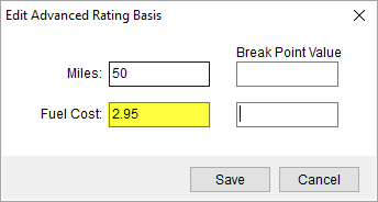 The application references the Fuel Cost when creating the invoice, quote, or revenue item. It is visible through the Edit Advanced Rating Basis dialog (see Step 5).