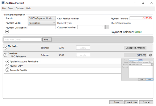 When a customer payment or vanline statement is generated in MoversSuite to the incorrect customer or order, the following outlines how to move the payment using Payment Management. This is the general concept.