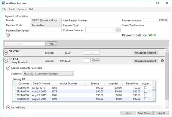 NOTE:  If the original entry was posted to No Order, then you would put the Unapplied Amount on the No Order line.