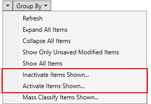 Mass Activate/Inactivate Options exist through the selected