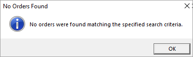 If the search is successful, a list of orders appears along with a count of orders found.