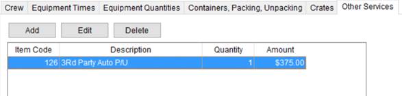 Enter and edit items associated to the service through the Add Other Services dialog.