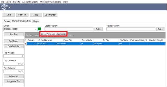 In Long Distance Dispatch, it is available by clicking on the safety indicator icon within the Current Driver Activity tab. In Figure 60, the safety indicator icon is green. By hovering your cursor over this button, Driver Personnel Information will briefly appear as a hint.