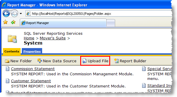 MoversSuite will use the Report Viewer to produce the output of documents including the images therefore the image files need to be loaded in into Microsoft SQL Server Reporting Services through the Report Manager and specifically into the application folder titled “System”.