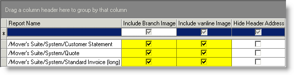 6. Repeat Steps 3 through 5 to enable other report documents to display the branch or van line image.