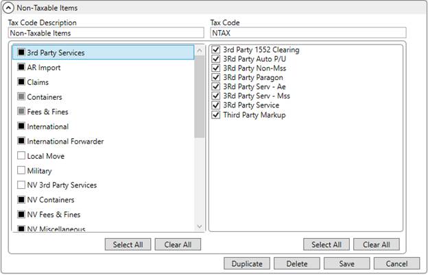 Lastly, you can establish special processing requests that are identified by Avalara through assigned Tax Codes. MoversSuite sends the Tax Code based on the Item Codes mapped to the Tax Code through Avalara Tax Code Setup. An example of a special Tax Code is for non-taxable or tax-exempt items.