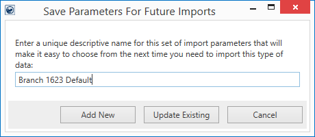 Figure 3: Save Parameters for Future Imports prompt