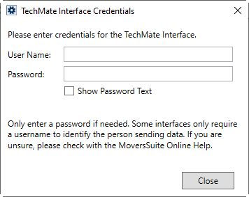 Each estimator that needs to log into TechMate from within the MoversSuite application must have their credentials defined within Personnel Setup. Set these credentials for the TechMate interface through the Interface Mappings tab.
