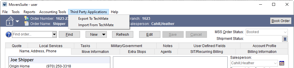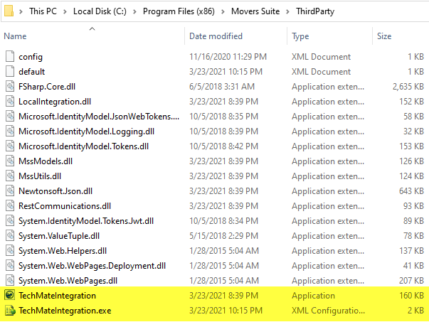 There should be a ThirdParty folder within the MoversSuite application directory. Add this folder, if it is missing, and place the configuration file and executable program for the TechMate application within this folder.