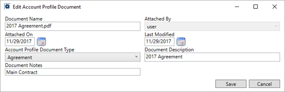 If you wish to have documents available for the profile, then add them through the Documents tab. Utilize the Add Account Profile Document screen to create documents visible within the Account Profile tab.