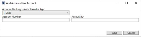 For T-Chek Advance Banking Service Type Provider, the following fields are to be supplied: