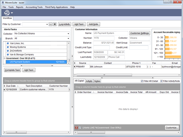 •Graphic display of account receivable aging data and alerts listing by customer