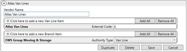 Setup Area: MoversSuite Administration > Administration > Van Line