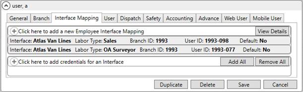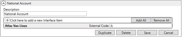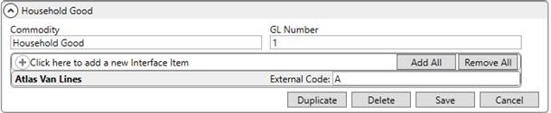 Establish an interface for the Atlas Van Lines within XML Interface Setup. Link this record to the established Van Line Item for Atlas and assign an External Code of A.