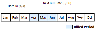 Figure 47: Calendar Quarterly Billing in Arrears with Half Month Prorating example