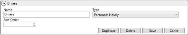 •Equipment Count and Equipment Hourly are available to Equipment Setup and to Equipment Type Setup records. •Packing Count is available to Material Type Setup records. •Personnel Count and Personnel Hourly are available to Labor Type Setup and to Personnel Setup records.