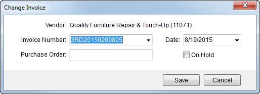 Select a different invoice number for the selected item from the drop-down menu or type in a new number (up to 20 characters). You are able to use the same invoice number for multiple third-party items as long as none of the items are posted. |