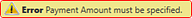 An Amount must be entered within Payment Amount to proceed. Once an Amount is entered, the error message will disappear.