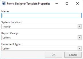1.    Create a new template through the Forms Designer Template Properties screen and provide a name as per your choice. The name provided here will be the name for your custom work ticket report/form.