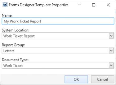 2.    Assign this template the Report System Location of Work Ticket Report in the Forms Designer Template Properties window.
